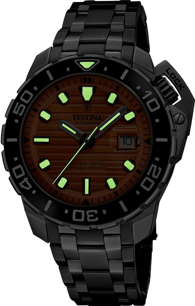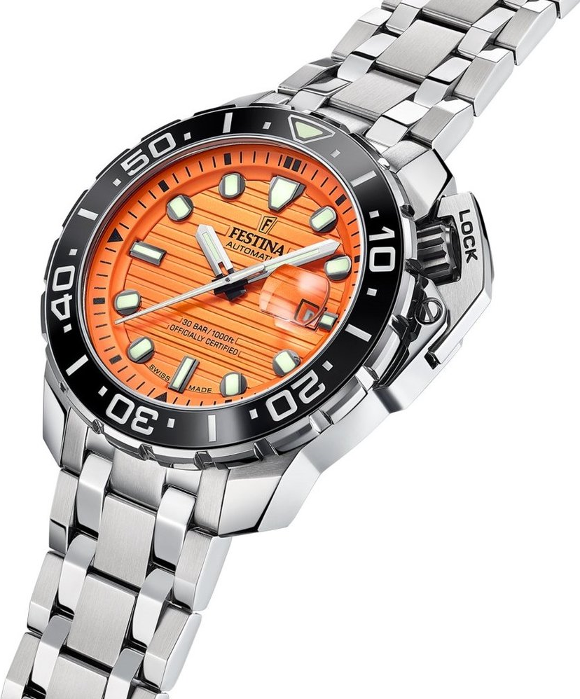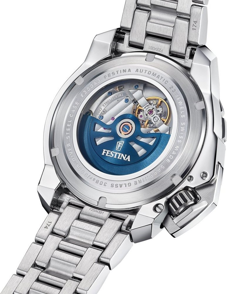 Funkce:Čas, datum, šroubovací korunka, chronometer, mechanický strojek Soprod Newton s automatickým nátahem, rezerva chodu 44 hodin a s C.O.S.C. certifikací, průhledné zadní víčko pro náhled na strojek, luminiscenční ručky a indexy, v krabičce je náhradní silikonový řemínek