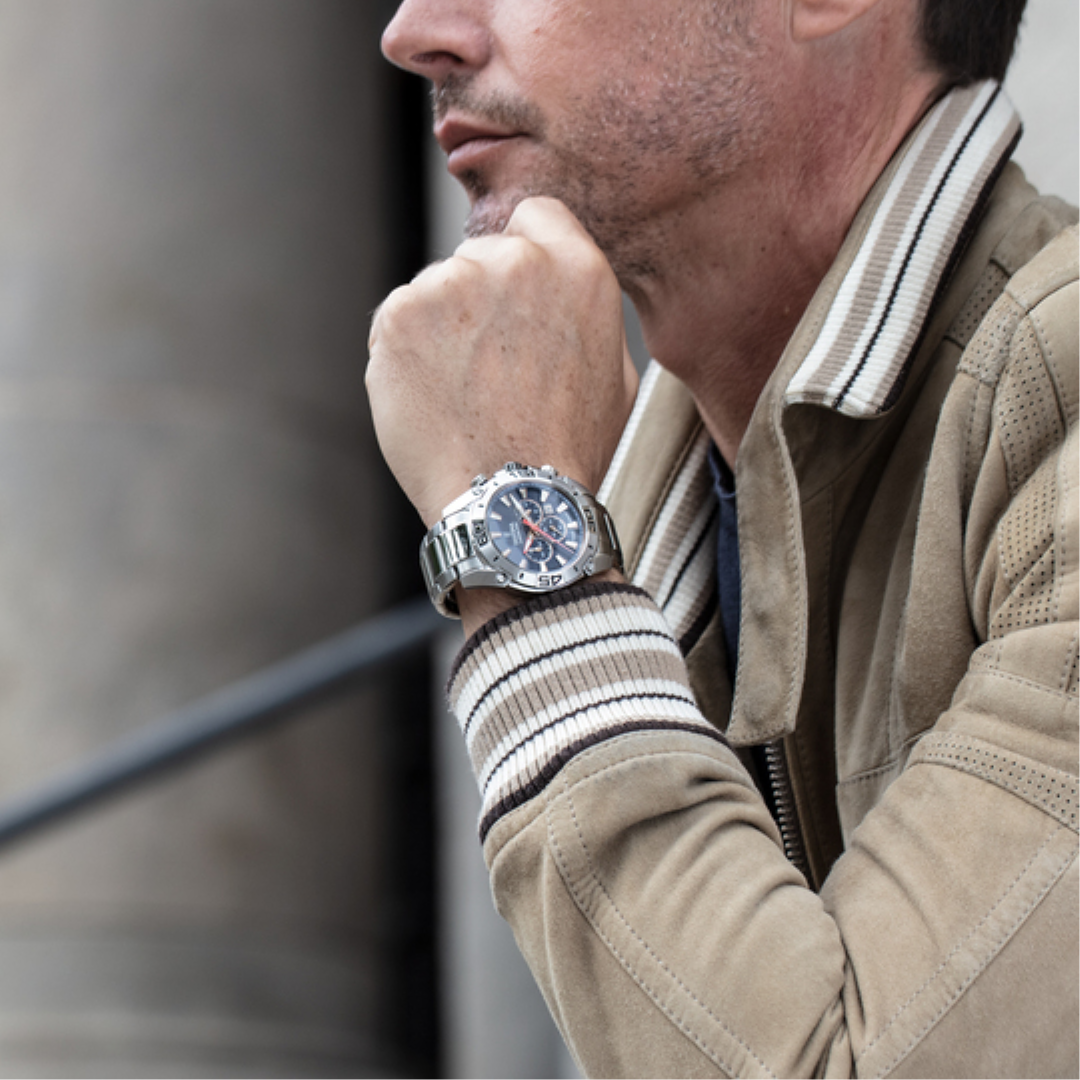 Materiál pásku / náramku:ušlechtilá nerez ocel 316L - kombinace matu (jemné kartáčování) a vysokého zrcadlového leskuKožený řemínek